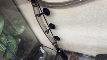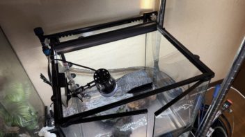 外部フィルター設置の弊害として、蓋が出来なくなりました。蓋の上にマイセンの入ったグラステラリウム3030を置いていたんですが、もう置けなくなりました。(´・ω・`)