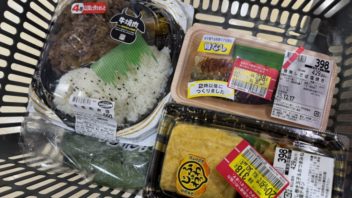 ついでに晩ご飯の調達です。オリジン弁当で焼肉弁当を買いました。あと、安くなっているお惣菜をいくつか。(´・ω・`)