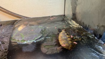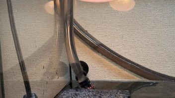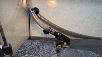 そして帰宅すると、ミズガメ達の水槽の外部フィルターが止まっていました(汗)。ストレーナーを固定している吸盤が外れてストレーナーが水上に出てしまって吸水が出来なくなっていました。( ´_ゝ`)