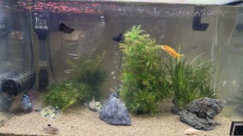 0時半前に目が覚めたので日本淡水魚水槽を見てみると、小赤が☆になっていました・・・。調子を崩してから2日間頑張っていましたが、ついに力尽きてしまいました。( ノд`)