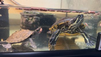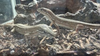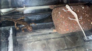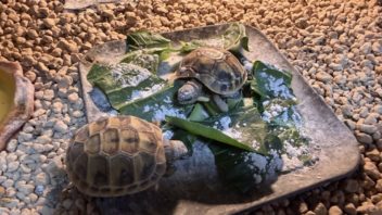 そして生き物達のお世話です。各飼育ケージに霧吹きしゅっしゅしたり、水場の水を換えたり。