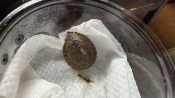 そしてベランダで冬眠中のカメ達の生存確認をしようとしたんですが、昨日から10年に1度の高温とかで気温が19℃ぐらいになっていたので水温も上がっていたのか、小丸も白丸もうろうろと動いていました(汗)。覚醒してしまったのか・・・?また気温や水温が下がって来たら冬眠に入るんでしょうか・・・。(´・ω・`)