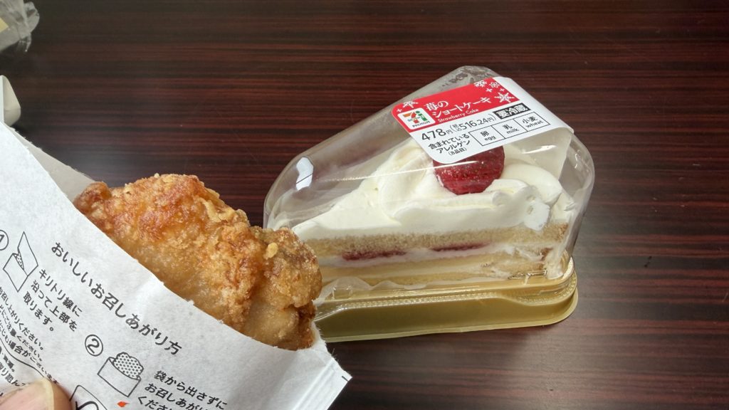 お昼休憩はセブンイレブンにお昼ご飯を買いに行きました。今日はクリスマスイブなので、食後のデザートにケーキを買おうと思って物色していたんですが、ちいかわのケーキがありました。1,500円(死)。無理。( ´_ゝ`)