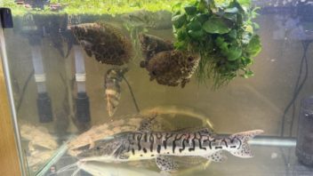 すると、熱帯魚水槽でブラックモーリーが1匹☆になっているのに気付きました・・・。これで家で生まれたブラックモーリーは残り1匹です。飼育日数は632日でした。( ノд`)