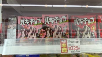 でも滅多に見かけないバキチョコのいちご味がありました。長い間いろんなスーパーで探していたんですが、全然無かったんですよね・・・。しかも半額です。なので、2箱買いました。(´・ω・`)