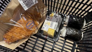ついでに晩ご飯の調達です。おにぎりと出汁巻き玉子と唐揚げのセットにしよう。(´・ω・`)