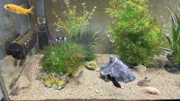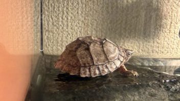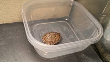 兜丸ですが、よく見ると甲羅のあちこちが緑色になっていました。これはコケか・・・?(;´Д`)