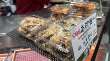 午後からもなんやかんやして仕事終了です。帰りは大丸の正起屋に晩ご飯を調達に行きました。今日は串は買わずに初めてですが宮崎風あぶり焼というのを買ってみました。あと、最近ハマりつつあるねぎ塩焼。(´・ω・`)