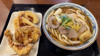 でも早く到着し過ぎるので、ディーラーの隣のクラウンパークに停めました。ここにはひごペットフレンドリーがありますが、今日は行かずに同じ敷地内の丸亀製麺でお昼ご飯を食べる事に。