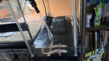 そして眠った気がしないまま朝です。8時半前から兜丸の水槽とイベリアトゲイモリ達の水槽の水を換えました。