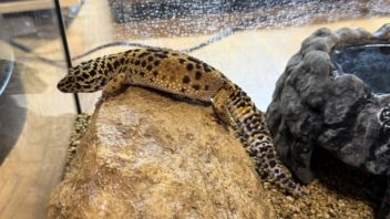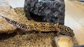 そして床材の交換です。デザートベースを敷いたんですが、これまでよりも白っぽい床材です。レオパは白っぽい床材の方が色が鮮やかになるそうです。(´・ω・`)