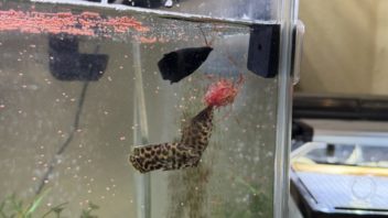 そしてまずベビー達2匹を入れました。もうベビーサイズではないですね・・・。せっかくなので、ソメ男とワケ男と名付けました。(´・ω・`)