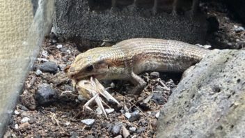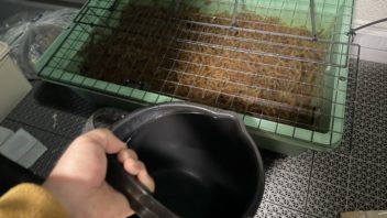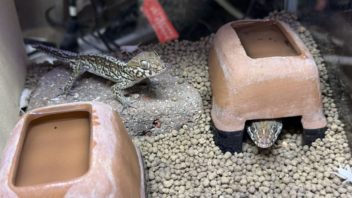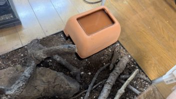 そんなこんなで帰宅して生き物達のお世話です。まずはニホントカゲ達の飼育ケージにウェットシェルターを設置します。