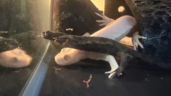 それはそうと、ササ美の隣にイモリ達の水槽があるんですが、ササ美がイモリ達をずーっと気にしています・・・。これはストレスになるかも知れないので、板を置いて見えなくしておきました。(´・ω・`)