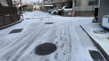 朝起きると雪はもう降っていませんでしたが、道はまだうっすらと積もっていました。転ばないように気を付けて会社へGO。山の上に住んでいるI岡さんはバスが運休なので遅れて来るそうです。(´・ω・`)