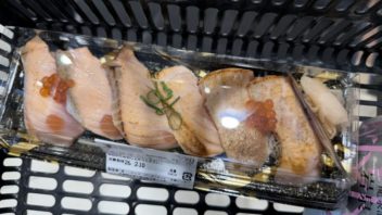 あと、久々に炙りサーモン寿司も買いました。