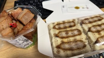 なので、うろうろしておつまみチャーシューを買ってみました。あと、向かいにまい泉があったのでカツサンドを買おうかと思ったんですが、さっき大丸のまい泉の横を通った時に100円引きになっていたので、また大丸に戻ってまい泉に行きました。すると、200円引きになっていました。(*´∀`)