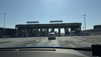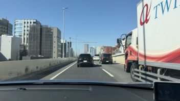阪神高速に乗ってインテックス大阪に向かいます。途中、渋滞気味になったり。(´┏┓`)