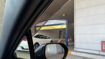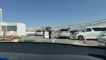 10時半過ぎにインテックス大阪に到着しました。屋上駐車場に停めたいんですが、満車表示が出ています・・・。でも、なんか順番待ちの列が進んでいるようなので並びました。