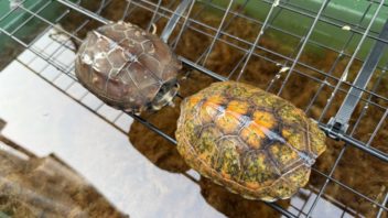 日本淡水魚水槽と肉食魚水槽のフィルターのろ過マットを換えたり、カブトニオイガメ達の水槽の水を換えたり。