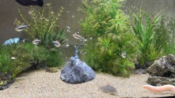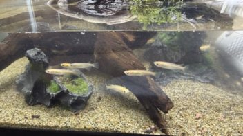 そして餌用のメダカ20匹を投入しました。水槽が広いのでなかなか捕食されないとは思いますが、まあ徐々に減って行くでしょう。(´・ω・`)