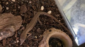 すると、カナヘビが産卵していました。カナヘビはこれまで何回も産卵していますが、全てダメな卵ばかりでした・・・。とりあえず今回もダメな気がしますが、とりあえず取り出してタッパーに腐葉土を入れて卵を隔離しました。数日様子を見よう。(´・ω・`)
