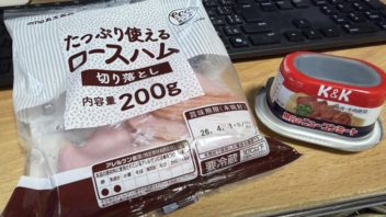 そしてお風呂に入ってから晩ご飯です。ハムとコンミート。(´┏┓`)