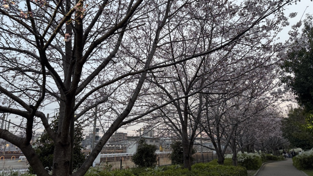 仕事帰りはI岡さんとS原さんと一緒に岸辺駅まで1駅歩く事にしました。そろそろ桜が咲いているでしょうか・・・。
