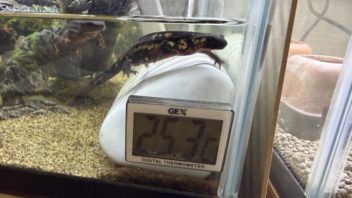帰宅すると、エアコンを切っているのに部屋がむわっと暑いです・・・。やはり日中はまあまあ気温が高くなっているんでしょうね・・・。イモリ達の水槽の水温も25℃を超えていました。これはそろそろ冷却の必要がありますね。(´・ω・`)