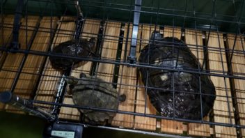 なので、この冬に室内飼いしていた黄緑丸と黒丸と大をベランダのプラ舟に戻す事にしました。