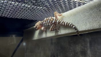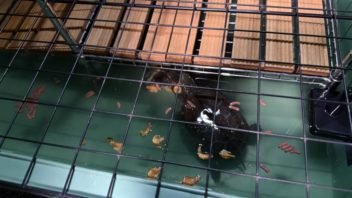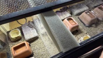 そして夜は晩ご飯を食べてから生き物達のお世話です。イモリ達にご飯をあげました。