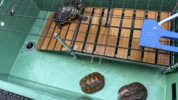 そして寝直して、その後も何回も目が覚めつつ朝です。とりあえずベランダのカメ達のプラ舟の水を換える事にしました。冬眠中の約4か月間、全く水が汚れなかったんですが、冬眠明けして餌をあげ始めた途端にめっちゃ汚れ始めました(死)。