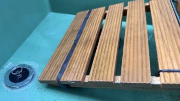 そして自作の陸場のスロープが木製で浮いて来るので、余っていた水草用のおもりを巻き付けてみました。これで浮くのが改善されるかな・・・。(´・ω・`)
