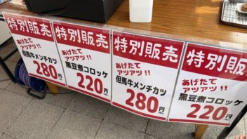 あと、黒豆煮コロッケと但馬牛メンチカツを買いました。車内で食べましたが美味い。(*´∀`)