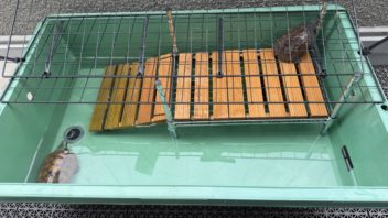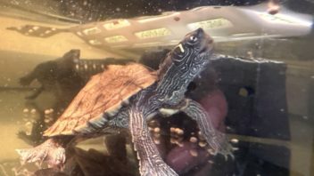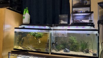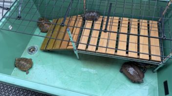 18時過ぎ、ベランダのカメ達の様子を見てみると、珍しく陸場の下から出て来ていたので餌をバラ撒いておきました。でもやっぱり喰いが悪いです。(´┏┓`)