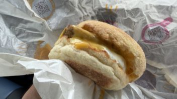 まずは近所のマクドナルドのドライブスルーで朝マックの調達です。まだ朝早いのに結構車が並んでいて時間がかかりました。( ´_ゝ`)