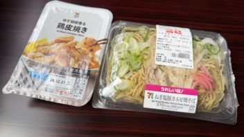 お昼ご飯はねぎ塩豚カルビ焼きそばと、またしても鶏皮焼きです。5回連続。(*´∀`)