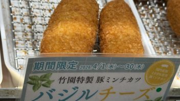 そんなこんなで仕事を終え、帰りは阪急百貨店に晩ご飯を調達に行きました。まずは竹園でひとくちヘレカツとコロッケです。あと、期間限定で豚ミンチカツがあったのでそれも買ってみました。