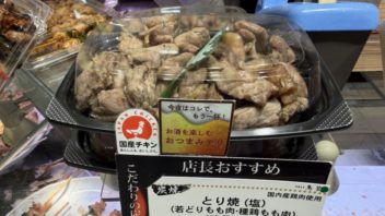そしてレジに行ったんですが、レジのおねいさんが「3つ買わないんですか?3つ買うと200円引きで1つほとんどダダになりますよ。(*´∀`)」と言いました。知らなかったんですが、金土日に冷凍食品を3つ買うと200円引きになるようです。なので、鶏皮焼きをもう1つ(死)。(´┏┓`)