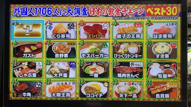 外国人が選ぶ日本の飲食チェーンベスト30&ジャイアントウサギ型ロボット
